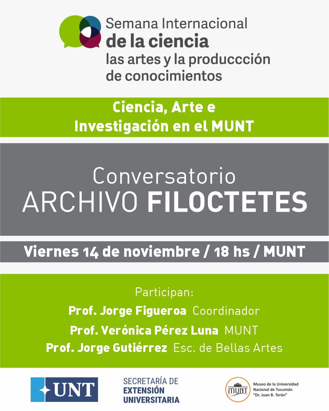 En el marco de la Semana Internacional de la Ciencia, las Artes y la Producción de Conocimientos, el MUNT invita al Conversatorio “Archivo Filoctetes”, una instancia de reflexión sobre procesos de investigación, arte contemporáneo y construcción de archivos.
