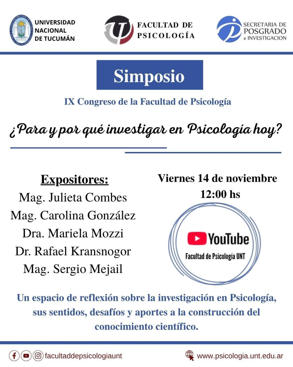 Simposio del IX Congreso de Psicología de Tucumán realizado el pasado mes de octubre. Un espacio de reflexión sobre la investigación en psicología, sus sentidos, desafíos y aportes a la construcción del conocimiento científico.